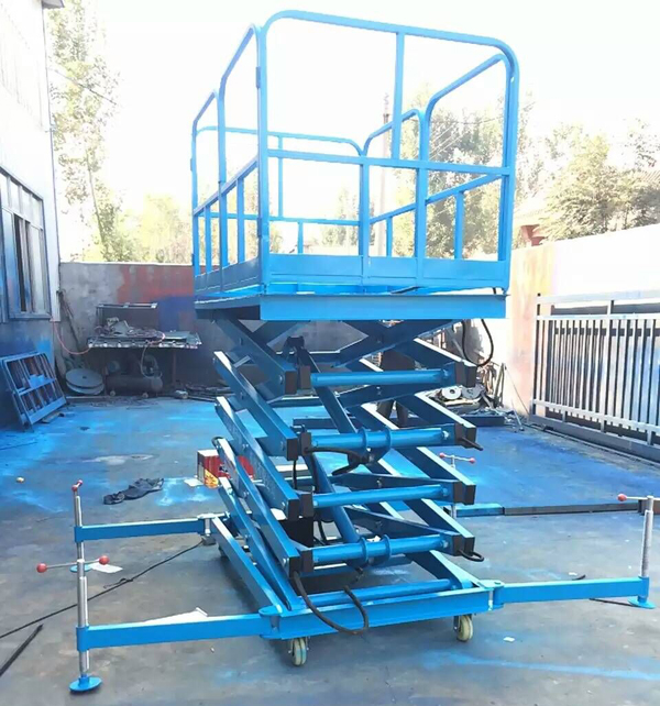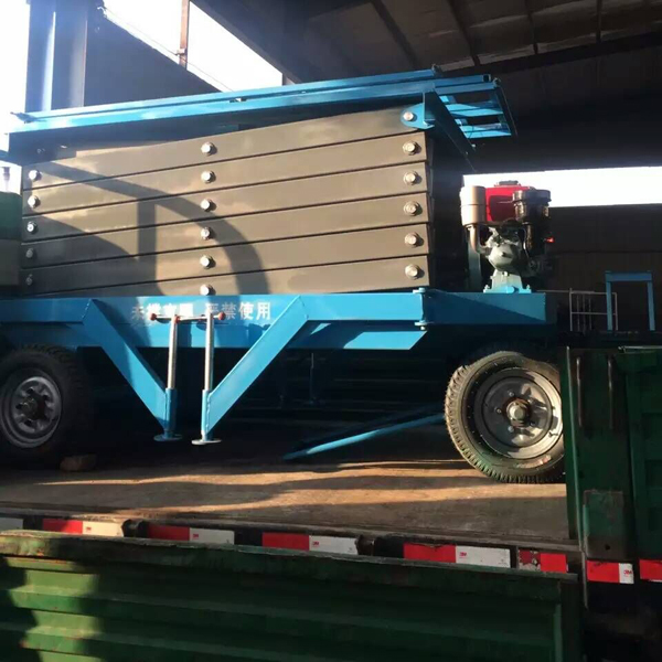 移動剪叉式升降平臺主要技術特點:臺面鋼板折彎、底架及剪叉結構山鋼定做高強度矩形管材; 標準冷彎槽做道軌,使用尼龍滑塊做導軌輪,接觸面大,升降平穩,晃動??;液壓油缸 內置防爆閥(防止油管斷裂,平臺失速下降),采用進口密封圈,經久耐用,不泄露;雙層鋼網高壓油管;升降機專用液壓泵站,加裝應急下降閥,平臺斷電可手動控制 下降,內置溢流閥,可防止上行運動時系統壓力過高,起到超載保護功能;充氣橡膠輪胎;電路電器、接觸器羅列連接,加裝熱過載保護,缺相保護等安全保護功能;電動上、下電動控制,控制按鈕盒加裝急停按鈕,以最大限度保障財產及人身安全,各操作部分使用24V安全控制電壓;軸銷圓鋼配做,調質處理;拋丸、噴砂 除銹處理,除去鋼結構構件表面的銹蝕及焊接飛濺,能使鋼構件表面產生一定程度的凹凸不平的效果,增大粉末的附著力;使用靜電粉末噴涂;涂層外觀質量優異,附著力及機械強度強,色澤亮度高,經久不褪色。