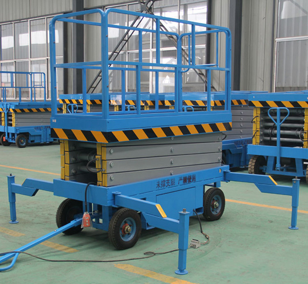 移動剪叉式升降平臺主要技術特點:臺面鋼板折彎、底架及剪叉結構山鋼定做高強度矩形管材; 標準冷彎槽做道軌,使用尼龍滑塊做導軌輪,接觸面大,升降平穩,晃動小;液壓油缸 內置防爆閥(防止油管斷裂,平臺失速下降),采用進口密封圈,經久耐用,不泄露;雙層鋼網高壓油管;升降機專用液壓泵站,加裝應急下降閥,平臺斷電可手動控制 下降,內置溢流閥,可防止上行運動時系統壓力過高,起到超載保護功能;充氣橡膠輪胎;電路電器、接觸器羅列連接,加裝熱過載保護,缺相保護等安全保護功能;電動上、下電動控制,控制按鈕盒加裝急停按鈕,以最大限度保障財產及人身安全,各操作部分使用24V安全控制電壓;軸銷圓鋼配做,調質處理;拋丸、噴砂 除銹處理,除去鋼結構構件表面的銹蝕及焊接飛濺,能使鋼構件表面產生一定程度的凹凸不平的效果,增大粉末的附著力;使用靜電粉末噴涂;涂層外觀質量優異,附著力及機械強度強,色澤亮度高,經久不褪色。