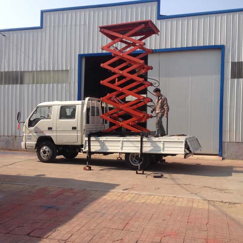 車載剪叉式升降機是整合汽車及剪叉式升降機的優勢于一身的新型高空作業設備。車載剪叉式升降機以小型貨車(汽車)或電瓶車為載體,移動靈活迅速,操作簡單,作業范圍廣。車載剪叉式升降機采用剪式升降結構,剪叉結構采用優質矩形錳鋼管制作,整體強度高,載重量大,升降穩定性好。設備可以利用汽車引擎動力驅動升降機。如果汽車自身不配備取力器接口。升降機的升降動力也可以根據客戶要求選配外接電源或者蓄電池的動力組合,也可以選用柴油機,發電機等動力裝備。若汽車不方便安裝任何動力系統,那么客戶還可以安裝手動升降裝置。車載剪叉式升降機以其汽車移動靈活迅速,操作簡單,作業范廣的優勢,廣泛用于城建、油田、交通、市政、室外廣告等行業。