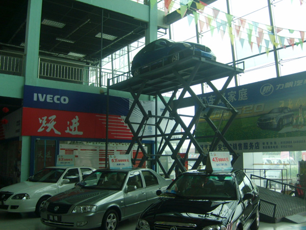 剪叉式汽車升降平臺是根據固定剪叉式液壓升降貨梯、升降平臺結構改裝而來。其主要使用于低層建筑物層間運送汽車,其結構堅固,承載量大,升降平穩,安裝維護簡單方便,可根據客戶現場環境不同,訂做不同的配置選擇,從而達到更好的使用效果,主要用于維修車間、倉庫和各種工作隔層汽車的上下運送:立體車庫和地下車庫層高間汽車舉升等。產品液壓系統設置液壓防墜、超載安全保護裝置,各樓層和升降機工作臺面均可設置操作按鈕實現多點控制,是經濟實用的低樓層間替代電梯的理想貨物輸送設備。