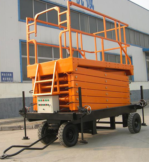 移動剪叉式升降平臺主要技術特點:臺面鋼板折彎、底架及剪叉結構山鋼定做高強度矩形管材; 標準冷彎槽做道軌,使用尼龍滑塊做導軌輪,接觸面大,升降平穩,晃動小;液壓油缸 內置防爆閥(防止油管斷裂,平臺失速下降),采用進口密封圈,經久耐用,不泄露;雙層鋼網高壓油管;升降機專用液壓泵站,加裝應急下降閥,平臺斷電可手動控制 下降,內置溢流閥,可防止上行運動時系統壓力過高,起到超載保護功能;充氣橡膠輪胎;電路電器、接觸器羅列連接,加裝熱過載保護,缺相保護等安全保護功能;電動上、下電動控制,控制按鈕盒加裝急停按鈕,以最大限度保障財產及人身安全,各操作部分使用24V安全控制電壓;軸銷圓鋼配做,調質處理;拋丸、噴砂 除銹處理,除去鋼結構構件表面的銹蝕及焊接飛濺,能使鋼構件表面產生一定程度的凹凸不平的效果,增大粉末的附著力;使用靜電粉末噴涂;涂層外觀質量優異,附著力及機械強度強,色澤亮度高,經久不褪色。