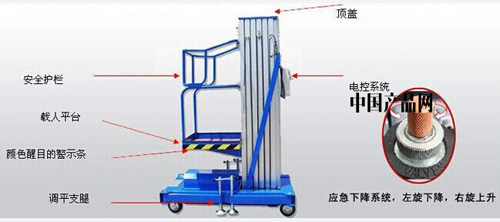 鋁合金升降機系列產(chǎn)品為多為室內(nèi)型,廣泛適用于星級酒店,大型超市等各行業(yè)大廳、廠房內(nèi)的高空作業(yè),具有升降平衡,操作方便,能進入一般門廳,可隨意進出電梯且耗電少、無污染、工作時不傷地面,可用于貼墻工作及探出作業(yè),工作無死角。鋁合金式液壓升降平臺產(chǎn)品采用優(yōu)質(zhì)鋁合金材料,動力經(jīng)過液壓泵站帶動鏈條傳動,結(jié)構(gòu)合理設計緊湊。鋁合金升降作業(yè)平臺根據(jù)升高高度分為單柱、雙住、三柱和四柱式,具有造型美觀、體積小、重量輕、升降平穩(wěn)等優(yōu)點,并能夠上下操作,升降平臺廣泛用于酒店賓館、車站候車室、機場候機樓、影劇院、展覽館、體育館等場所,是保養(yǎng)機具、油漆裝修、調(diào)換燈具、電器、清潔保養(yǎng)等用途的伴侶。