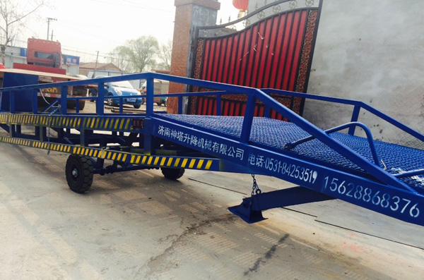 移動式液壓登車橋產品采用人工液壓動力,不需外接動力電源,只需單人操作,就可以實現貨物的安全快速裝卸,節省時間和人力資源。它可使企業減少大量勞動力,成倍提高裝卸作業效率,加快貨物流通速度,獲取更大經濟效益。移動登車橋被廣泛應用于無裝卸設備的貨臺及流動裝卸場所,是與叉車配合使用的貨物裝卸輔助設備。并可以根據不同的車型及裝車過程車廂的高度變化進行調節。廣泛應用于大型化工工廠運輸備料、物流集散中心運輸貨物、港口碼頭上下集裝箱,移動式液壓登車橋廣泛的應用各種物流或者工礦企業的裝卸貨物的工作當中。